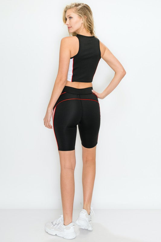 Color crop top and biker short set